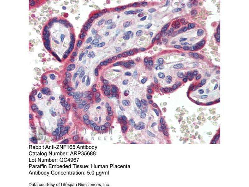 - This is a rabbit polyclonal antibody against ZNF165. It was validated on Western Blot using a cell lysate as a positive control.