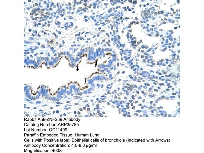 - This is a rabbit polyclonal antibody against ZNF239. It was validated on Western Blot and immunohistochemistry.