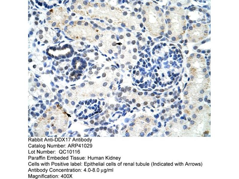 - This is a rabbit polyclonal antibody against DDX17. It was validated on Western Blot and immunohistochemistry.