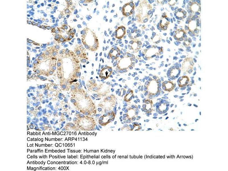 - This is a rabbit polyclonal antibody against MGC27016. It was validated on Western Blot and immunohistochemistry.