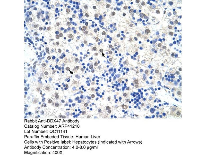 - This is a rabbit polyclonal antibody against DDX47. It was validated on Western Blot and immunohistochemistry.