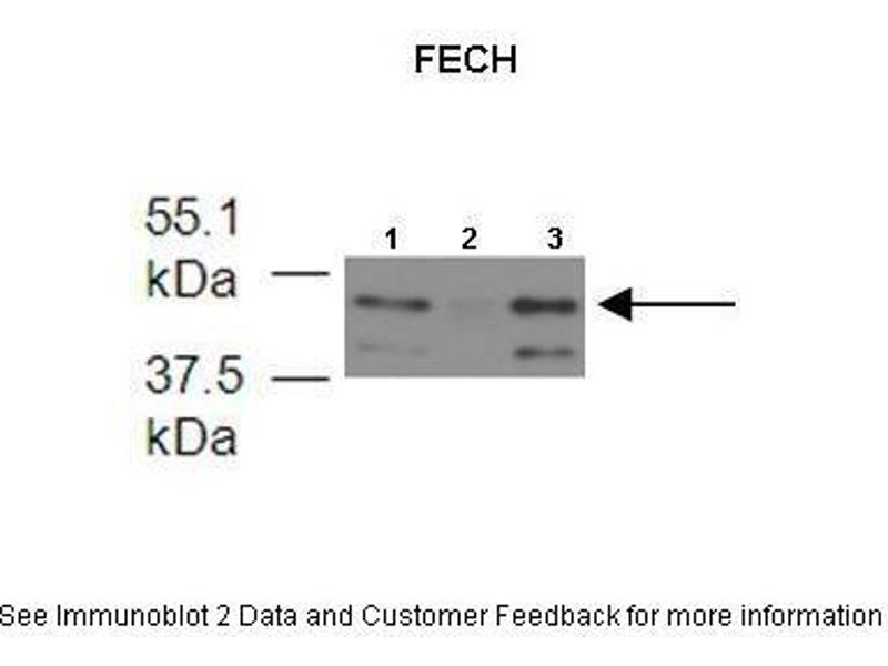 - This is a rabbit polyclonal antibody against FECH. It was validated on Western Blot using a cell lysate as a positive control.