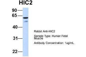 - This is a rabbit polyclonal antibody against HIC2. It was validated on Western Blot using a cell lysate as a positive control.