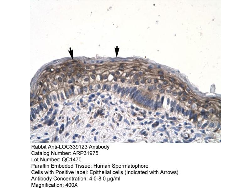 This is a rabbit polyclonal antibody against LOC339123. It was validated on Western Blot and immunohistochemistry.