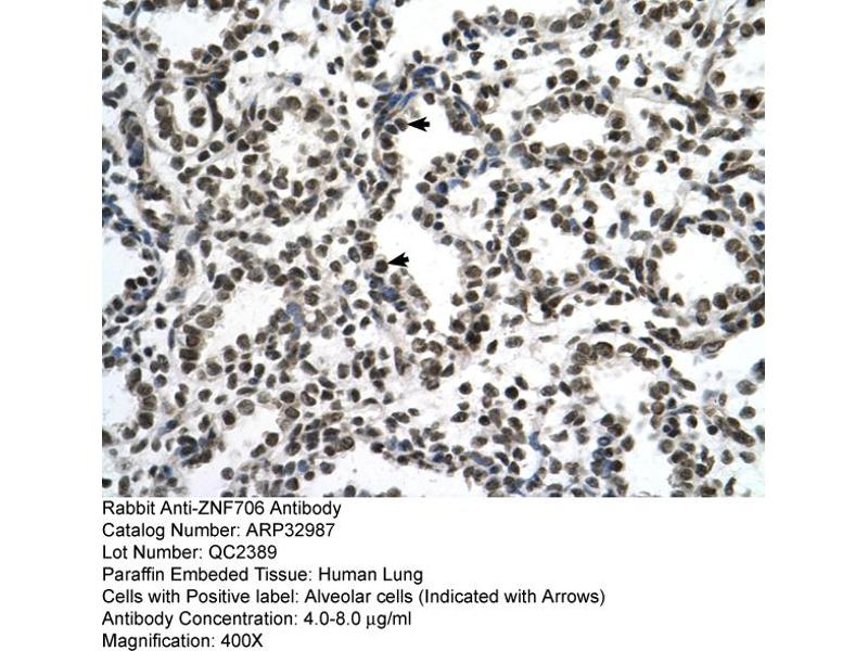 - This is a rabbit polyclonal antibody against ZNF706. It was validated on Western Blot and immunohistochemistry.