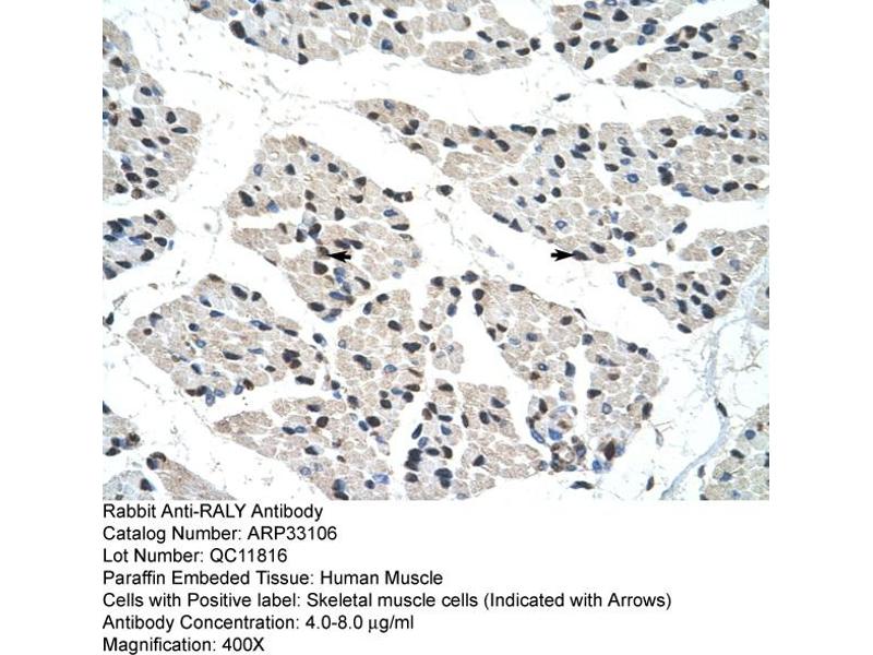 - This is a rabbit polyclonal antibody against RALY. It was validated on Western Blot and immunohistochemistry.