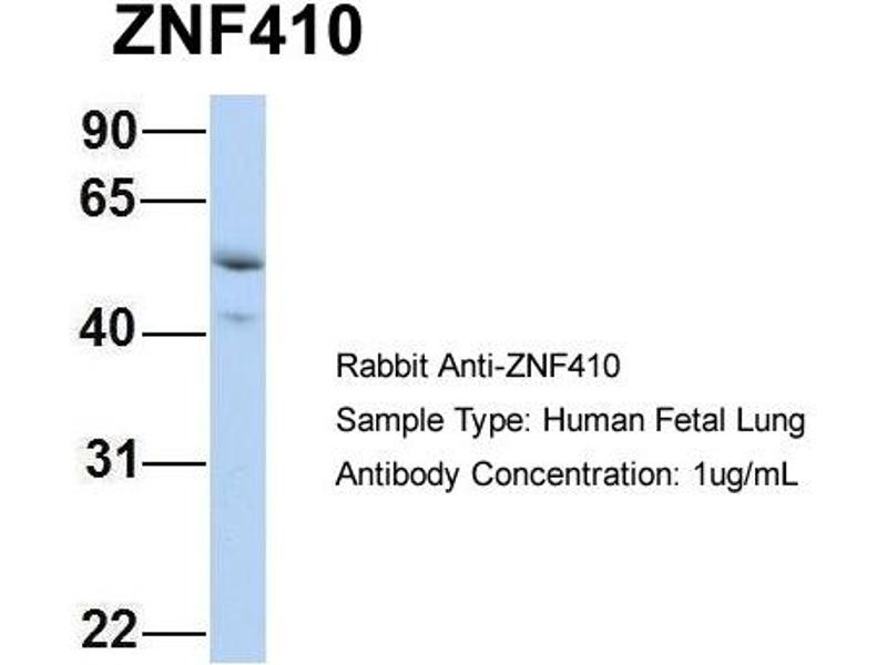 - This is a rabbit polyclonal antibody against ZNF410. It was validated on Western Blot using a cell lysate as a positive control.
