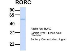 - This is a rabbit polyclonal antibody against RORC. It was validated on Western Blot using a cell lysate as a positive control.