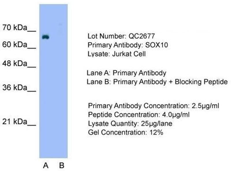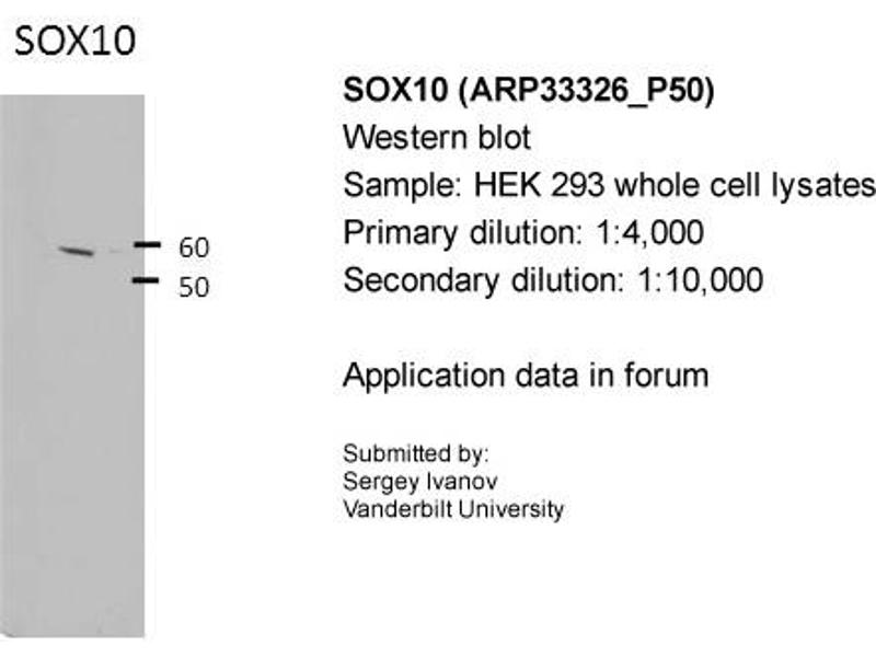 - The immunogen is a synthetic peptide directed towards the middle region of human SOX10