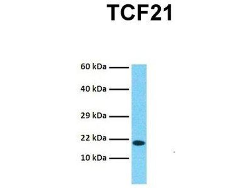 - This is a rabbit polyclonal antibody against TCF21. It was validated on Western Blot using a cell lysate as a positive control.