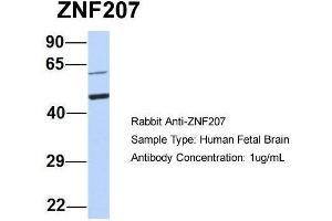 - This is a rabbit polyclonal antibody against ZNF207. It was validated on Western Blot using a cell lysate as a positive control.