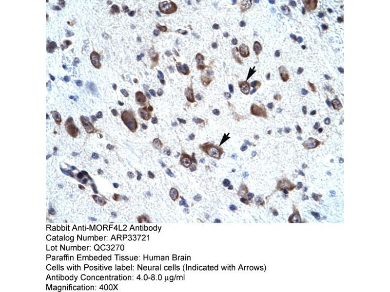 This is a rabbit polyclonal antibody against MORF4L2. It was validated on Western Blot and immunohistochemistry.