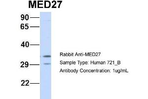 - This is a rabbit polyclonal antibody against MED27. It was validated on Western Blot using a cell lysate as a positive control.