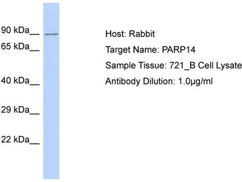 - This is a rabbit polyclonal antibody against PARP14. It was validated on Western Blot.