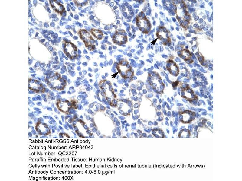 - This is a rabbit polyclonal antibody against RGS6. It was validated on Western Blot and immunohistochemistry.