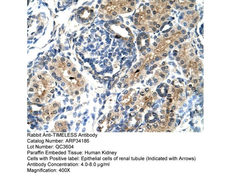 - This is a rabbit polyclonal antibody against TIMELESS. It was validated on Western Blot and immunohistochemistry.