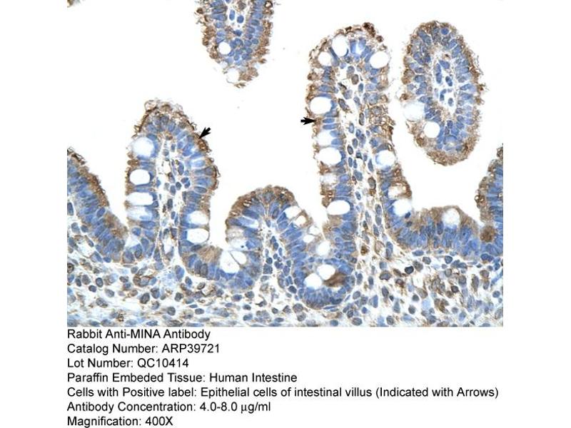 - The immunogen is a synthetic peptide directed towards the N terminal region of human MINA