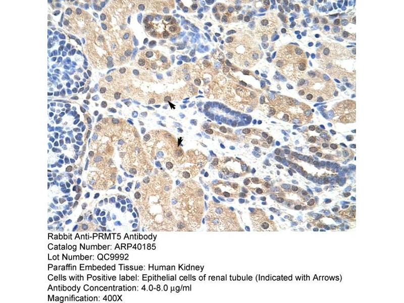 - The immunogen is a synthetic peptide directed towards the N terminal region of human PRMT5