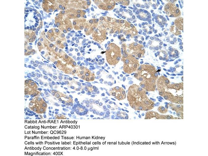- This is a rabbit polyclonal antibody against RAE1. It was validated on Western Blot and immunohistochemistry.