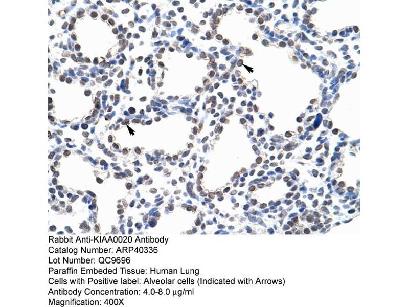 - This is a rabbit polyclonal antibody against KIAA0020. It was validated on Western Blot and immunohistochemistry.