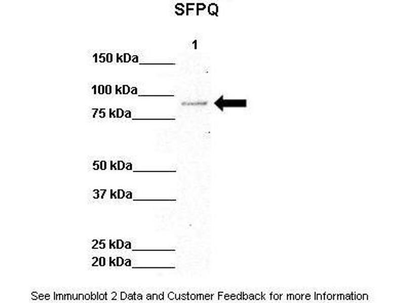 - The immunogen is a synthetic peptide directed towards the N terminal region of human SFPQ