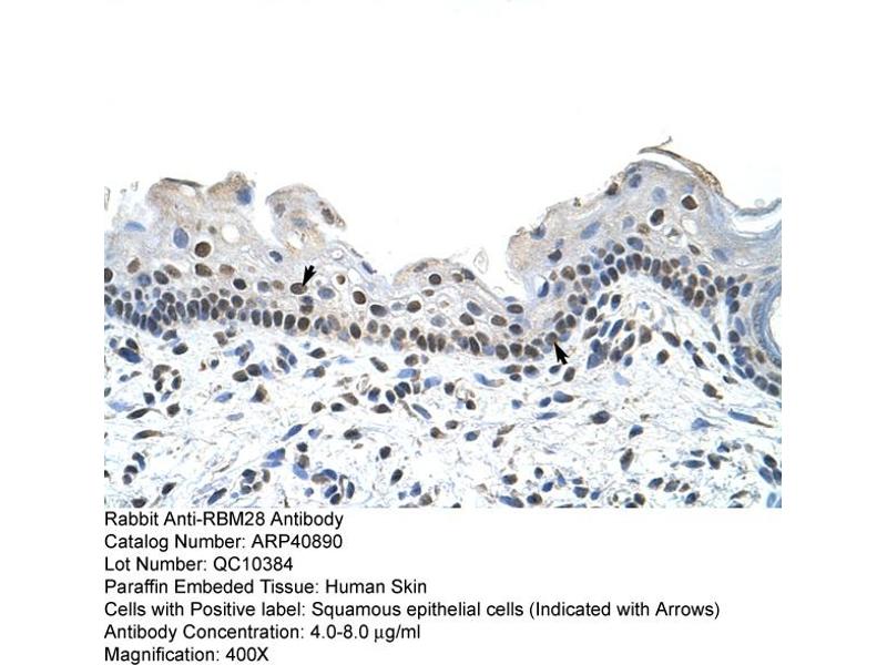 - This is a rabbit polyclonal antibody against RBM28. It was validated on Western Blot and immunohistochemistry.