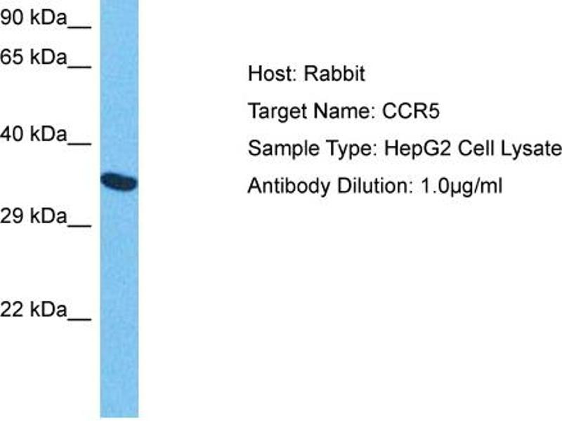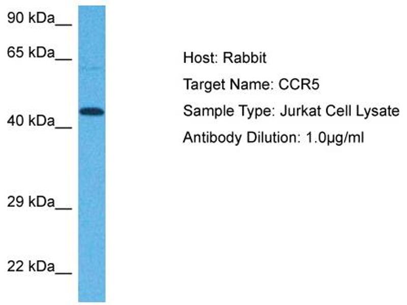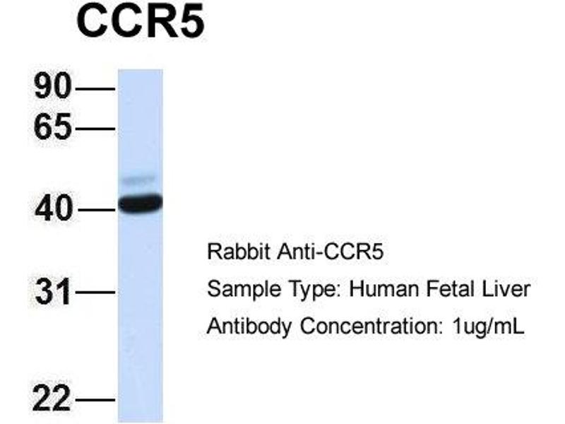 - This is a rabbit polyclonal antibody against CCR5. It was validated on Western Blot using a cell lysate as a positive control.
