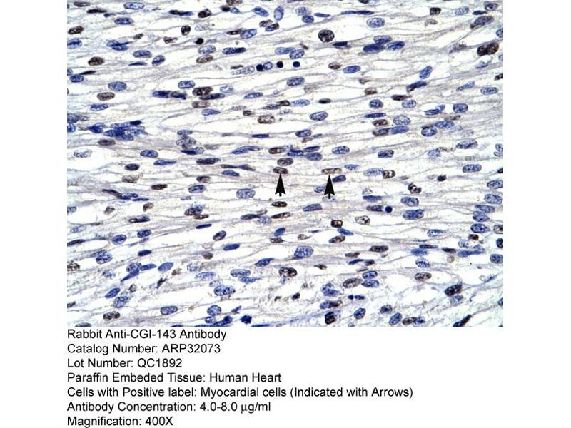 - This is a rabbit polyclonal antibody against CGI-143. It was validated on Western Blot and immunohistochemistry.