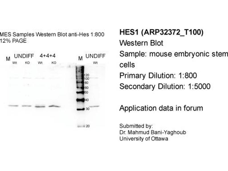 - This is a rabbit polyclonal antibody against HES1. It was validated on Western Blot and immunohistochemistry.