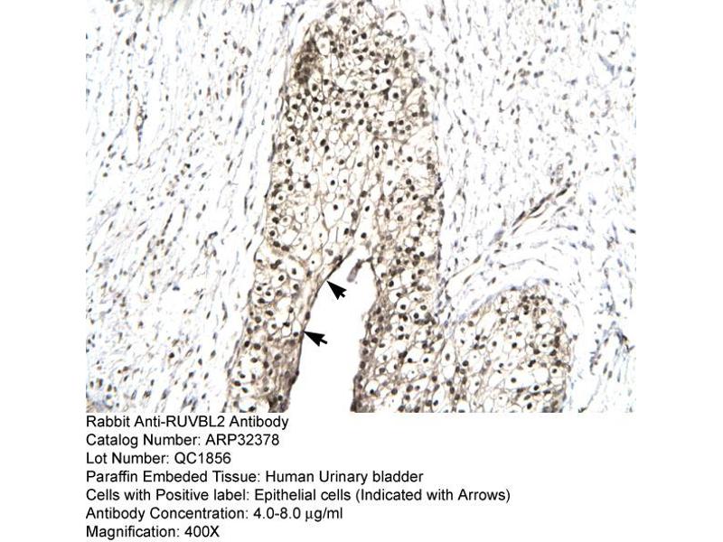- This is a rabbit polyclonal antibody against RUVBL2. It was validated on Western Blot and immunohistochemistry.