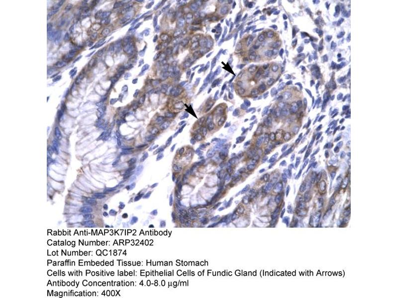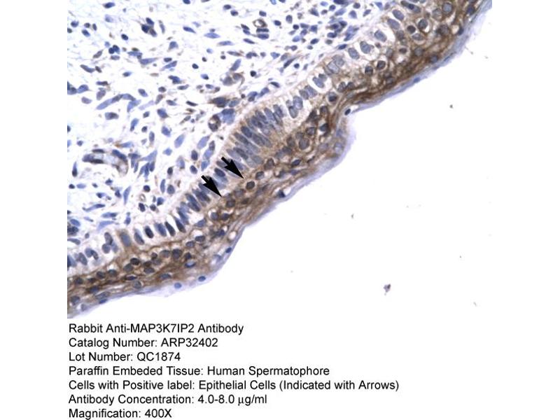 - The immunogen is a synthetic peptide directed towards the N terminal region of human MAP3K7IP2