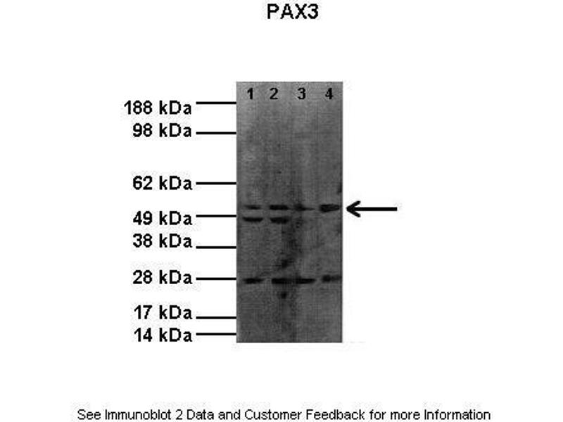 - This is a rabbit polyclonal antibody against PAX3. It was validated on Western Blot using a cell lysate as a positive control.