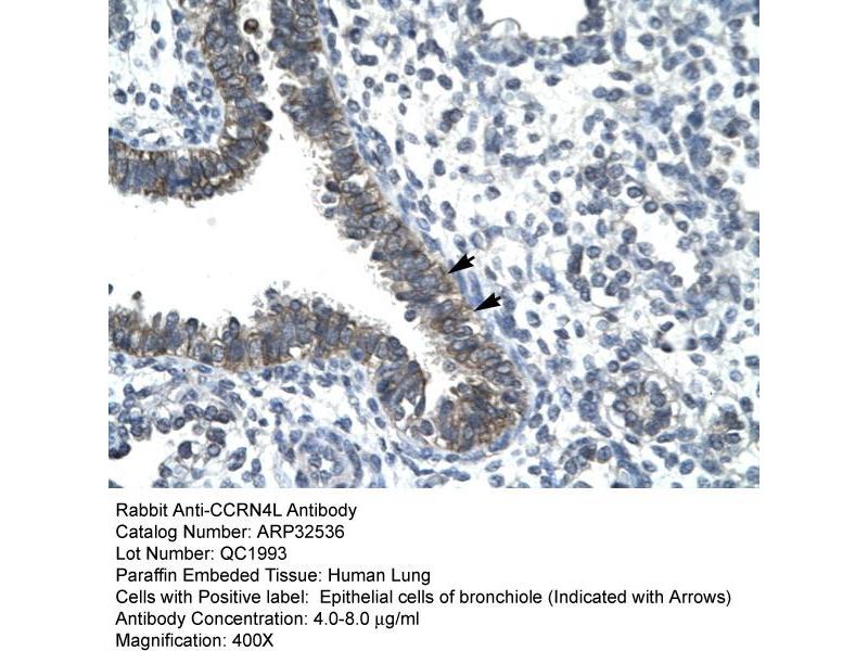 - This is a rabbit polyclonal antibody against CCRN4L. It was validated on Western Blot and immunohistochemistry.