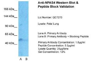 - This is a rabbit polyclonal antibody against NPAS4. It was validated on Western Blot using a cell lysate as a positive control.