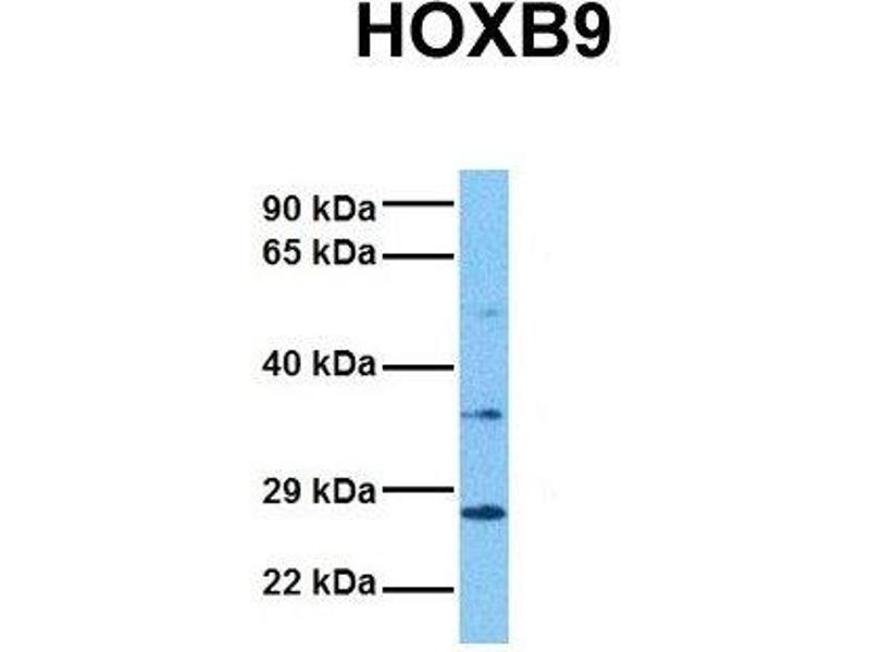 - The immunogen is a synthetic peptide directed towards the N terminal region of human HOXB9