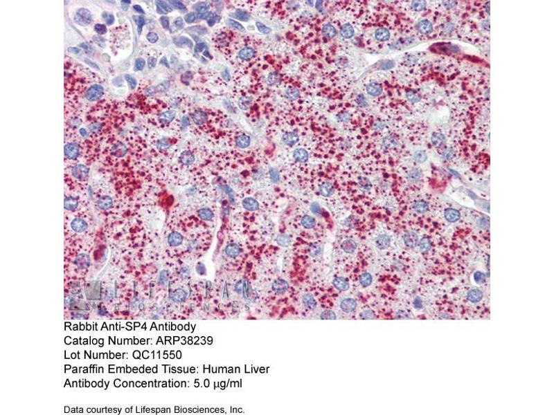 - The immunogen is a synthetic peptide directed towards the middle region of human SP4