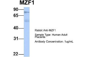 - This is a rabbit polyclonal antibody against MZF1. It was validated on Western Blot using a cell lysate as a positive control.