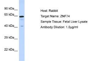 - This is a rabbit polyclonal antibody against ZNF74. It was validated on Western Blot.