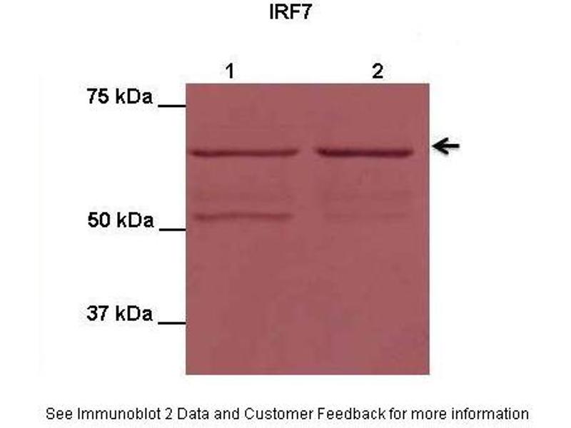 - This is a rabbit polyclonal antibody against IRF7. It was validated on Western Blot using a cell lysate as a positive control.