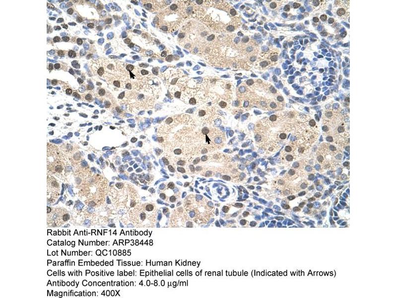 - This is a rabbit polyclonal antibody against RNF14. It was validated on Western Blot and immunohistochemistry.