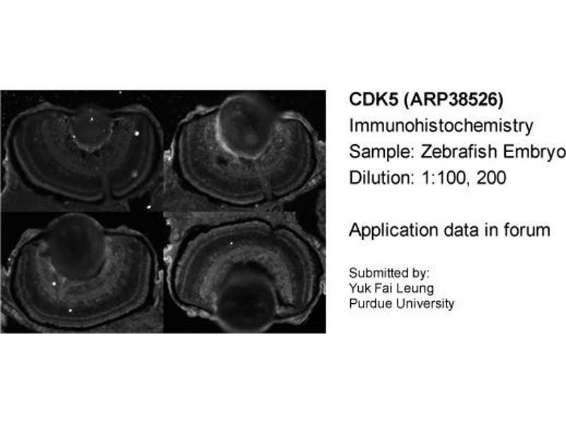 - The immunogen is a synthetic peptide directed towards the C terminal region of human CDK5