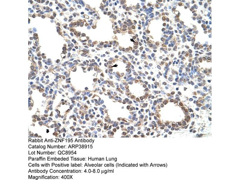 - This is a rabbit polyclonal antibody against ZNF195. It was validated on Western Blot and immunohistochemistry.