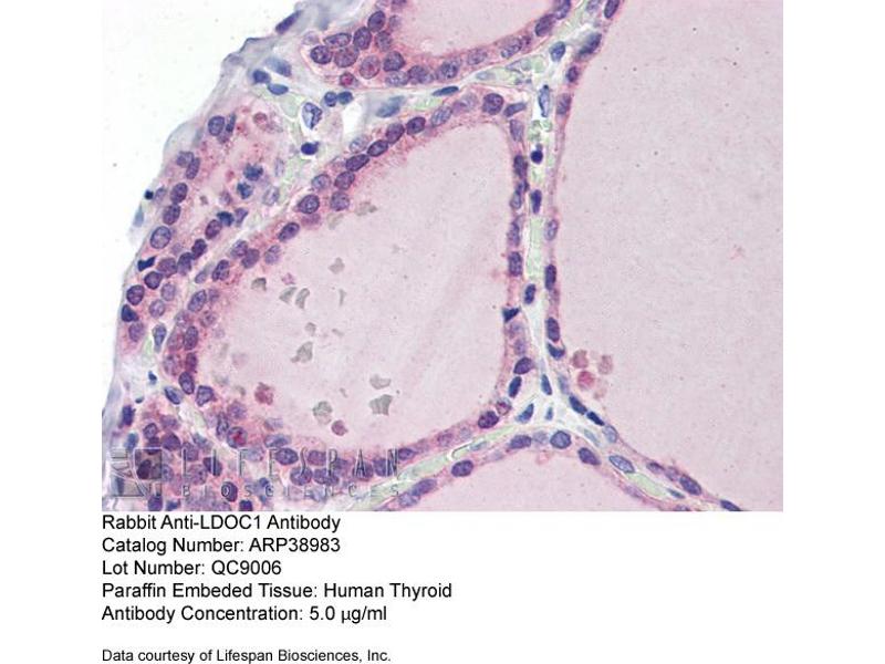 - The immunogen is a synthetic peptide directed towards the N terminal region of human LDOC1