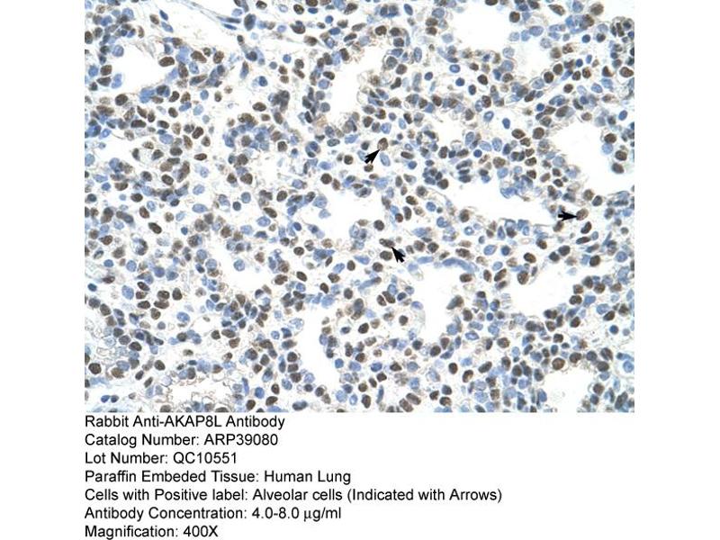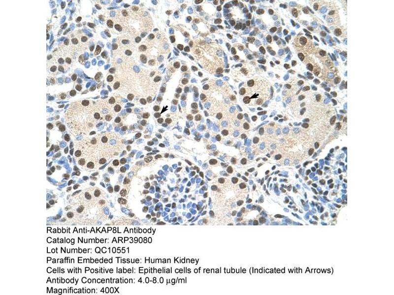 - This is a rabbit polyclonal antibody against AKAP8L. It was validated on Western Blot and immunohistochemistry.