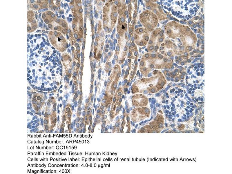 - This is a rabbit polyclonal antibody against FAM55D. It was validated on Western Blot and immunohistochemistry.