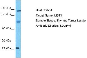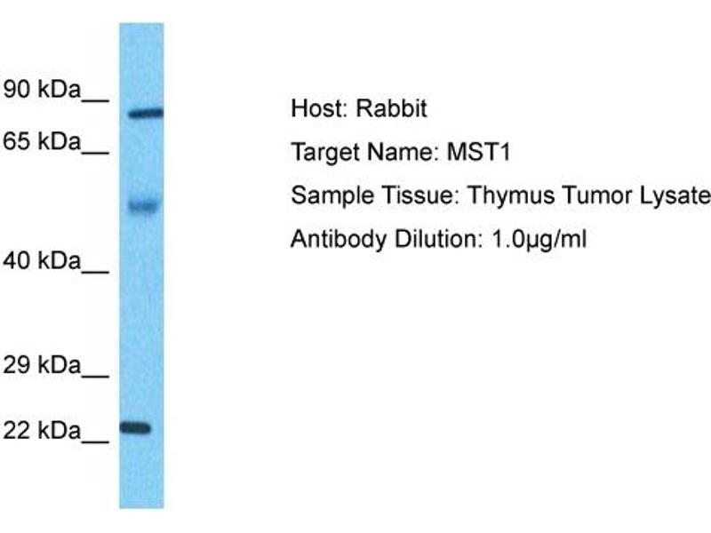 - The immunogen is a synthetic peptide directed towards the N-terminal region of Human MST1
