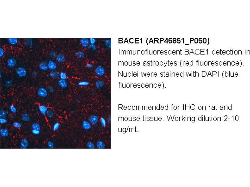 - The immunogen is a synthetic peptide directed towards the N terminal region of human BACE1