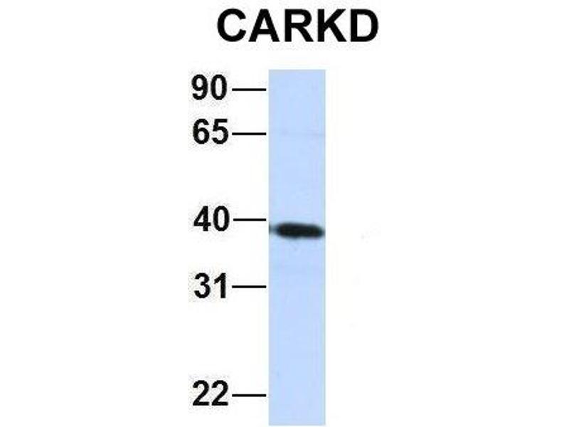 - The immunogen is a synthetic peptide directed towards the middle region of human CARKD