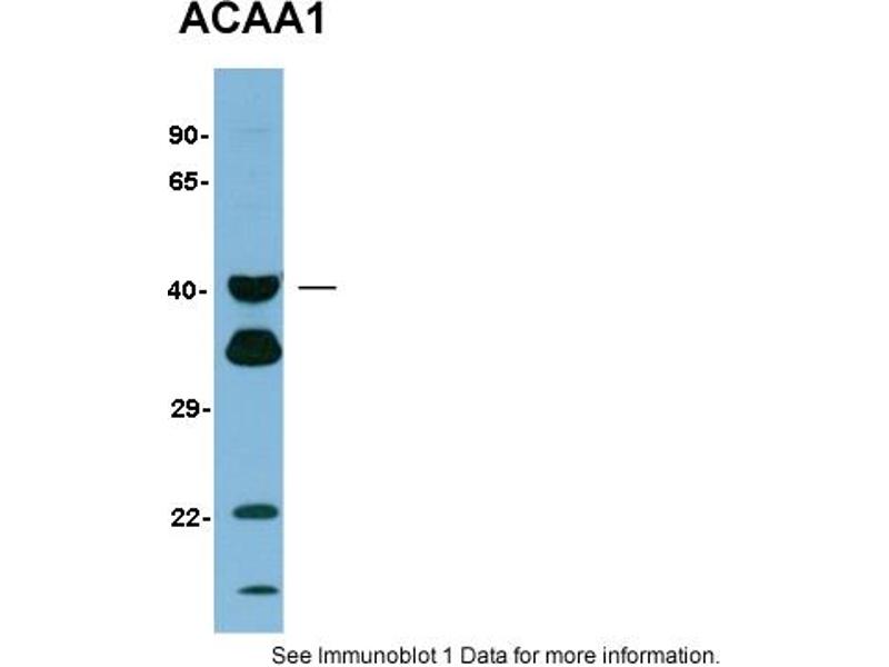 - This is a rabbit polyclonal antibody against ACAA1. It was validated on Western Blot using a cell lysate as a positive control.