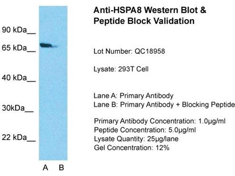 - This is a rabbit polyclonal antibody against HSPA8. It was validated on Western Blot using a cell lysate as a positive control.
